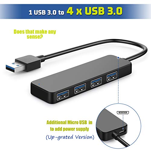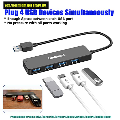 4-Port USB Hub 3.0, T-Sound USB Splitter for Laptop, Ps4 Keyboard and Mouse Adapter for Dell, Asus, HP, MacBook Air, Surface Pro, Acer, Xbox, Flash Drive, Mobile HD, Console, Printer, Camera …