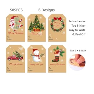 【Super durable】You will acquire a roll of 6 different design Christmas gift tags stickers, a total of 505 from Santa gift tags, the name tags for Christmas presents super durable, enough to satisfy all your Christmas decorating needs, and there are enough of them to last you for several years.