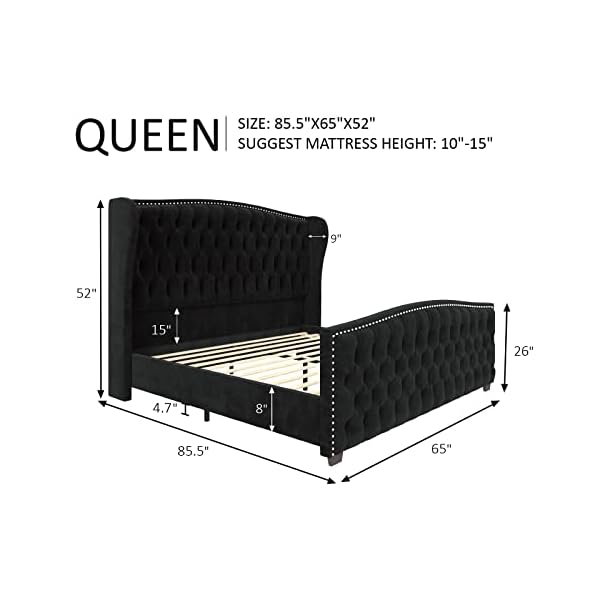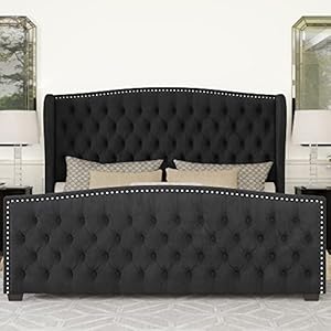 Grand and glamorous, our queen bed frame features elegant tall wingback headboard & deep diamond tufted footboard, stealing spotlight in your bedroom decor.