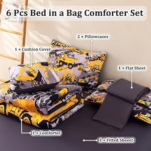【Enjoy A Sound Sleep】The truck bedding set is made from 100% microfiber, which is breathable, soft, warm and Skin-friendly. The boys comforter is fluffy and lightweight without being too heavy to strain you, keeping you warm and cozy in all seasons.