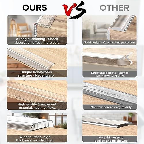 ????【Upgraded Hollow Design】Compared to most solid baby proof edge protectors on the market, our protector strips design with a unique hollow structure inside. The interior has a unique hollow design, which protects the safety of the baby to a greater extent through the protection of the air layer. The airbag cushioning also makes the protectors softer than solid corner protectors, and rebounding quickly when impacted, helping babies and the elderly to avoid being hurt by sharp walls and tables.
