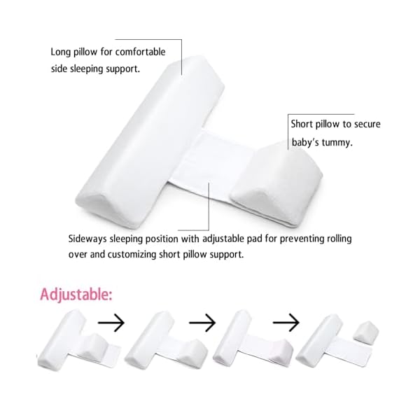 Baby Side Sleeper Wedge Adjustable,Wedge Pillow for Newborn Anti-Deflection Waist Protection,Removable Anti-Roll Sleep Positioner-White