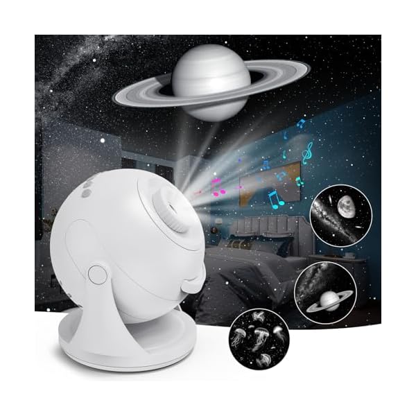 30 Natural & Soothing Sounds: Accompanied by the starry sky, enter the dreamland. This white noise machine including 5 types of white noise, 3 rain sounds ,6 lullabies and 16 natural sounds(sea waves, brook, bird, train, etc.). Combined with the starry sky projector to provide your baby, children and adults with the best sleep therapy. Adjust the projection and timing function to make your bedroom a quiet starry sky and help you sleep well overnight.