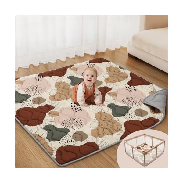 Baby Play Mats for Floor,50×50 Play Mat for Playpen,Thicken Soft Padding Foam Playmats for Babies and Toddlers Infants Kids, Foldable and Machine Washable Baby Crawling Mat,Boho Design