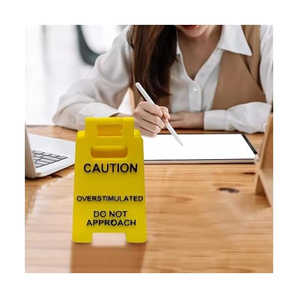 Caution Overstimulated Desk Sign, 3D Printed Caution Overstimulated Do not Approach Signs, Funny Office Desk Warning Sign