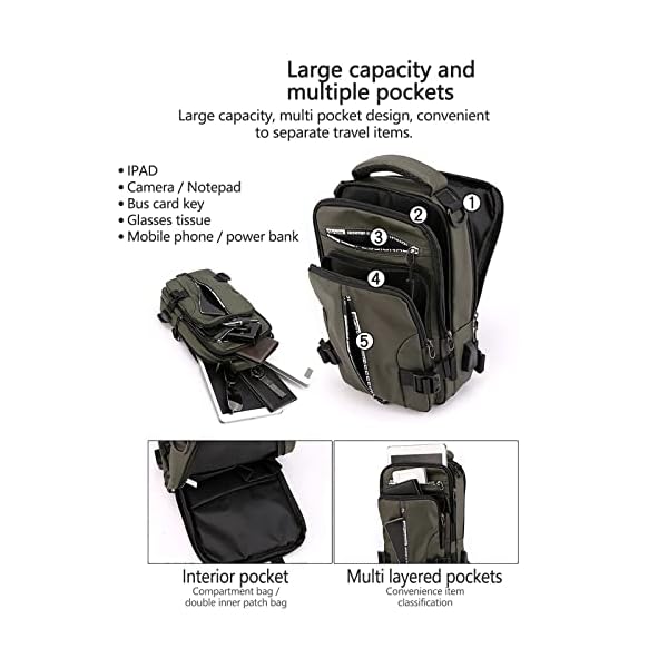 Birdfly Multi-functional Crossbody Bags, Sling Bag for Men Women Shoulder Backpack with USB Cable for Hiking Camping Outdoor Trip (Black)