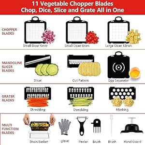 ✔️【Unmatched Quality & 13-in-1 Multifunctionality】 -FIRAWER vegetable cutter is a versatile and affordable with excellent value in the market. It can be diced, sliced, shredded, grate, and cuts in multiple ways for onions, cucumbers, carrots, chocolate, cheese, and more. Allows you to prepare meals more efficiently and easily, saving a lot of time. Durable for up to three years. Get your FIRAWER vegetable chopper with container today and enjoy a more comfortable cook!