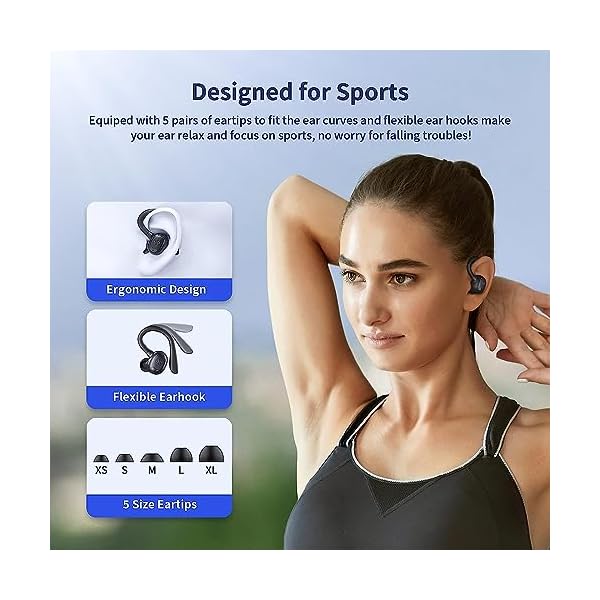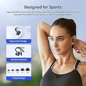 【Fit and Comfortable for Sports Headphones】 Different with other round ear tips, S16 sports bluetooth earbuds feature with the round and flat shape silicone ear tips to fit a wider range of ears. The ear tips create an acoustic seal that closes in the sound to immersive your music world. Ear hooks are non-slip design to a secure fit and ensure your earbuds stay comfortably firm in place during long hours of exercising.