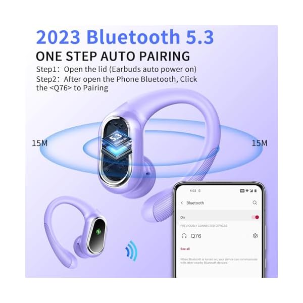 Bluetooth 5.3 and Auto Connection: Wireless earbud adopt advanced bluetooth 5.3 technology. You can get 2x faster transfer speeds than Bluetooth 5.2, more stable transmission, lower power consumption and ultra-low latency listening experience. Open the lid of the charging case, the bluetooth earphones can be automatically connected to the previous paired device. The wireless earphones are compatible with almost Bluetooth-enabled devices such as iOS, Android cellphones, tablets, laptops, TV, etc.