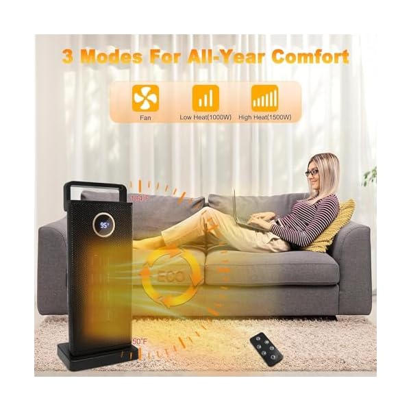 đ„ăFast HeatingăPowerful 1500W PTC ceramic heating allows this space heater to heat up in seconds, suitable for warming up spaces in the home including bedrooms, basements, garages, living rooms, and can also be used in offices, dorms, hot yoga studios, etc.