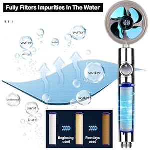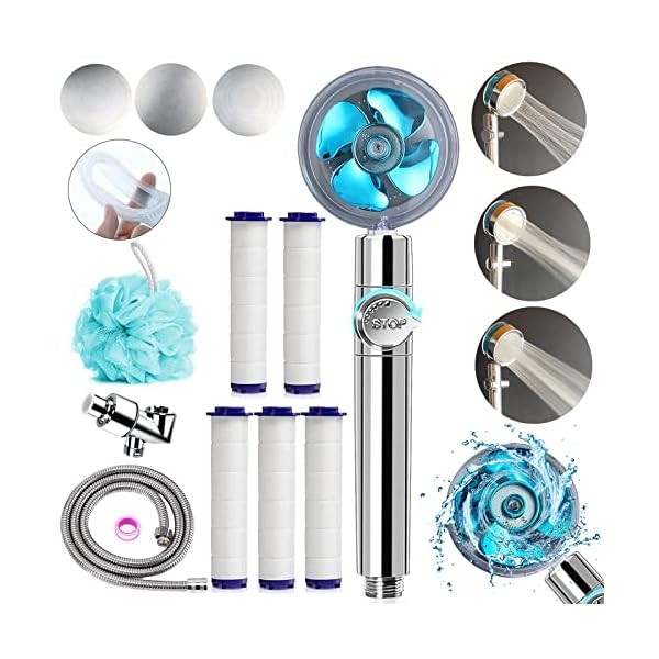 ?[High-Pressure Filtered Shower Head] Handheld turbocharged pressure propeller shower head. The micro nozzle design makes the outlet holes smaller and the turbofan to boots water flow speed, thereby can increasing the water pressure and saving water. We provide 3 different water panels, water comes out and forms a pretty shape, so you can adjust your spray setting as per your need, each mode can bring you a fine dense, and gentle water that makes your body feel relaxed.