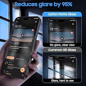【Reduce Glare by 95%】Uyiton iPhone 15 Pro matte screen protector, crafted with Mano-Etching technology, softens screen glare and alters the optical transmission trajectory to minimize unwanted harsh reflections. This ensures that the content on the screen is clearly visible, even outdoors or in bright lighting.