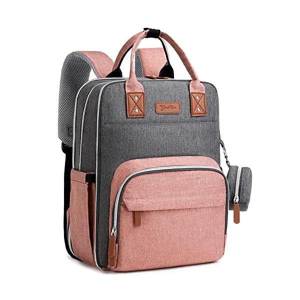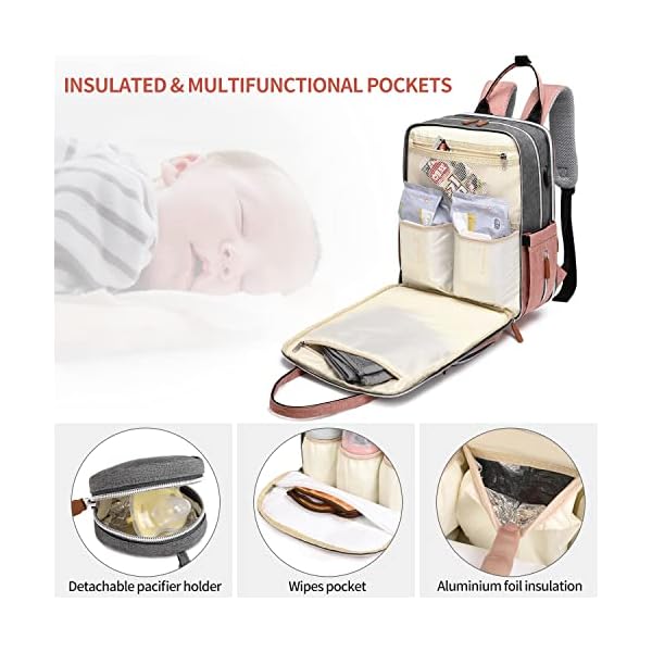 [Convenient on the Go] Extra wide opening makes this diaper backpack easy to find essentials in a pinch, and dual zippers for easy-access & closure even with one hand! Easy-grab handle & back ergonomic design & thick padded shoulder straps offer you a comfortable carrying and of force reinforcement.