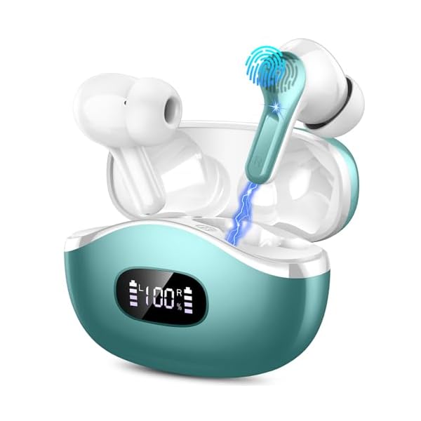 Wireless Earbuds, Bluetooth Headphones V5.4 HiFi Stereo Ear buds with ENC Noise Cancelling Mics, 40H Bluetooth Earbuds with LED Display Charging Case, IP7 Waterproof Earphones for Android iOS, Green