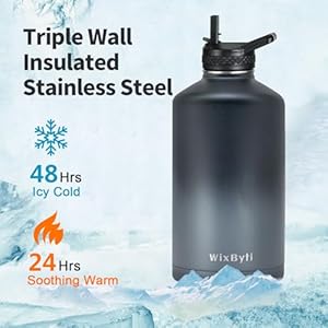 After Services and Package: We offer continuous after-sales service against leakage and poor cold/hot-keeping capability, we are committed to 100% customer satisfaction. Your purchase includes: WixByti 128oz Water Bottle, Carrying Pouch with Adjustable Strap, Straw Lid with 2 Straws & 1 Straw Brush, Spout Lid, Paracord Handle, Water Bottle Stickers