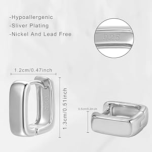 【Quality Material】These earrings are made of 925 silver plated brass. Nickel-free and lead-free hypoallergenic hoop earrings for women’s sensitive ears!