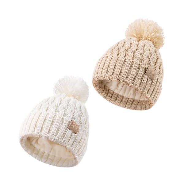XOMZG Baby Beanie Hats with 2-Pack,Warm Winter Hats for Boys and Girls,Infant Fleece Lined Toddler Baby Hats for 0-36 Month