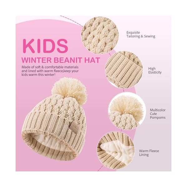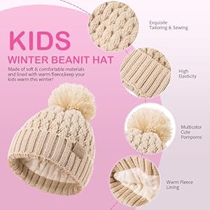 Quality materials:This beanie hat is made of high quality acrylic knitting yarn.This kind of material thick,breathable and soft,and makes baby’s skin not sultry and warm,it won’t make the child’s scalp prickle.let kids feel comfortable.