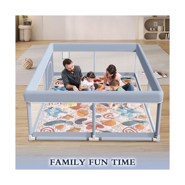 『LARGE BABY PLAYPEN』65 x 50 inch baby playpen wiht Mat provides enough space for 3 toddlers to play at the same time. Whenever your baby uses this indoor and outdoor activity, which is great for sharing quality time with your family, and comfortable for baby to walk, crawl and explore.
