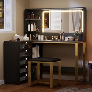 Space-saving L-shaped Corner Vanity: Maximize your space with this 48″ L-shaped corner vanity table! Its unique design not only saves space but also adds a cozy, aesthetic touch to your room. Ideal for creating a stylish and efficient beauty nook